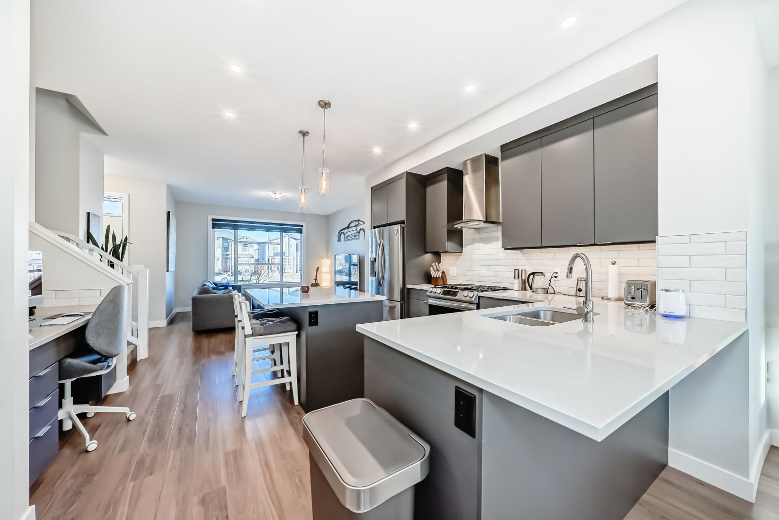 Welcome to Wolf Willow! This stunning townhouse sits on one of the most desirable streets in the community, with a pathway promenade that will connect with the river pathways leading into fish creek. This no condo fee townhouse features many builder upgrades, including upgraded railings and skylight. This home also features a soft water system.The main floor has plenty of space for family or entertaining. The Kitchen has an upgraded modern cabinetry with backsplash and beautiful quartz countertops with plenty of seating all around. You will love the upgraded appliances, including gas stove! Th...