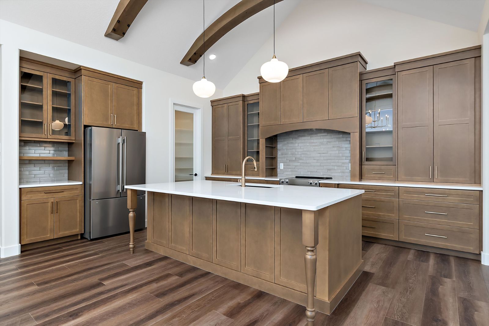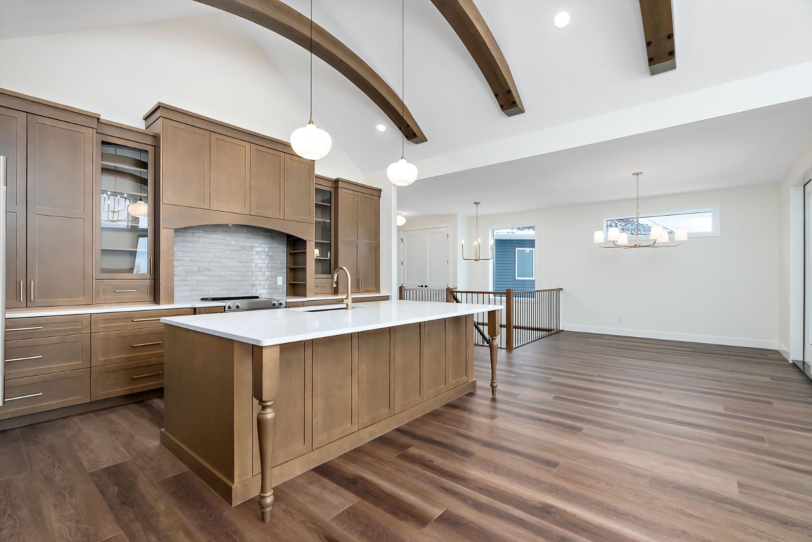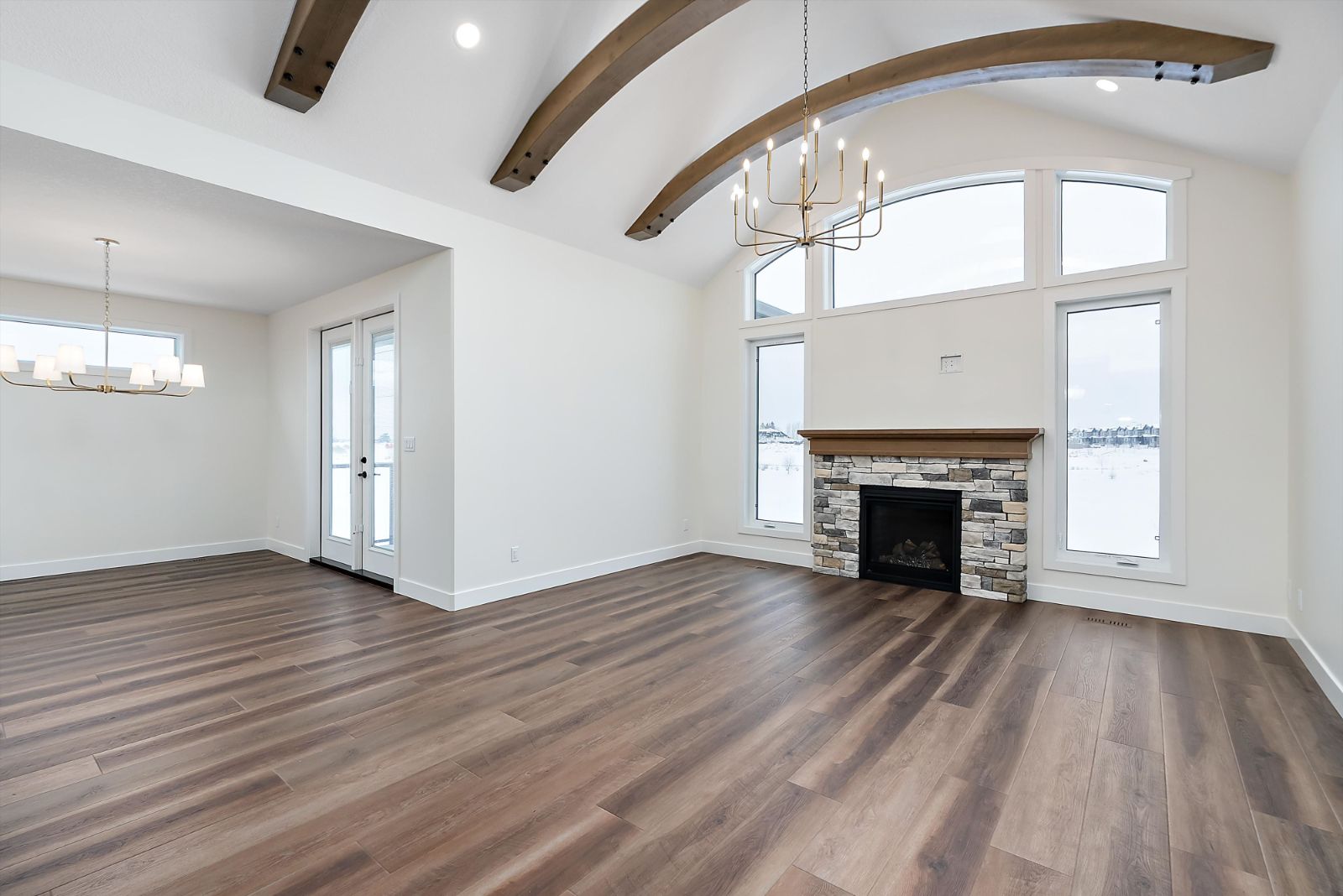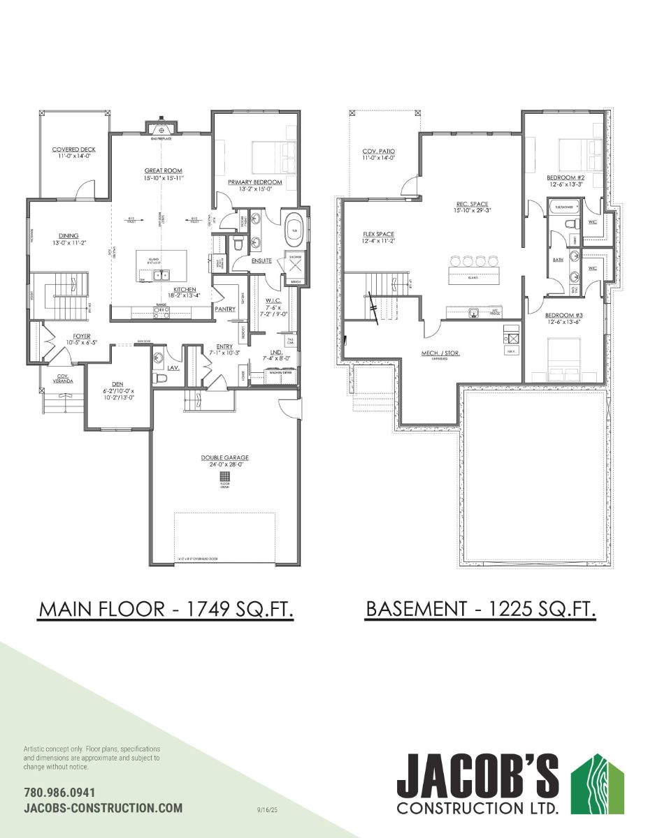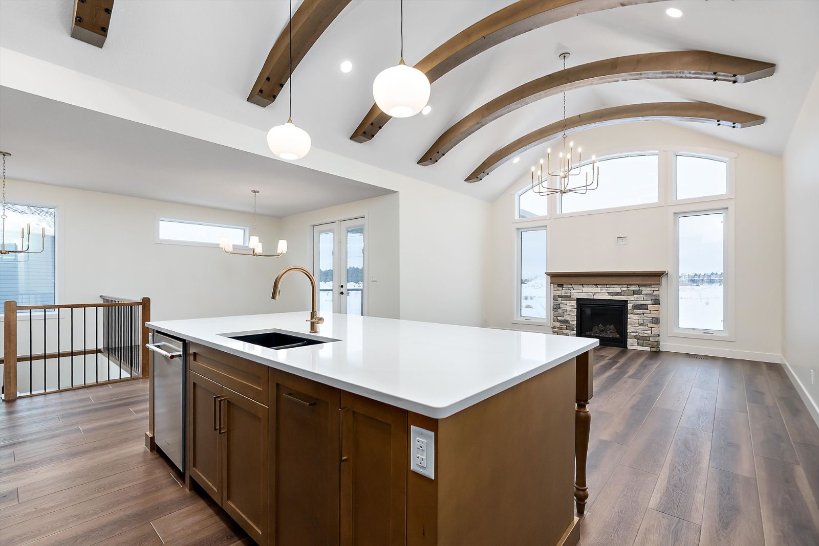 Welcome to The Rowan — a beautifully crafted 1,749 sq. ft. custom bungalow by Jacob’s Construction, located in the desirable community of Leduc. This thoughtfully designed home blends timeless craftsmanship with modern luxury, offering refined finishes, generous ceiling heights, and a fully finished walkout basement. The main floor showcases 9’ ceilings and striking 8’ interior doors, creating an airy and upscale atmosphere throughout. A vaulted ceiling with custom wood beams anchors the kitchen and great room, complemented by a cozy gas fireplace with a stained wood mantel. The chef’s kitchen...