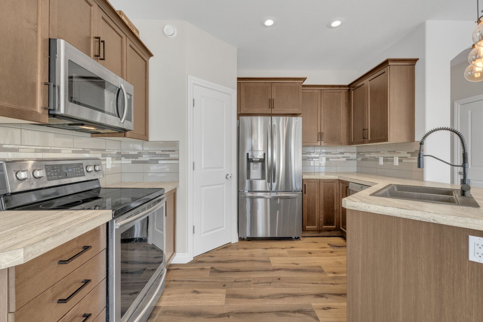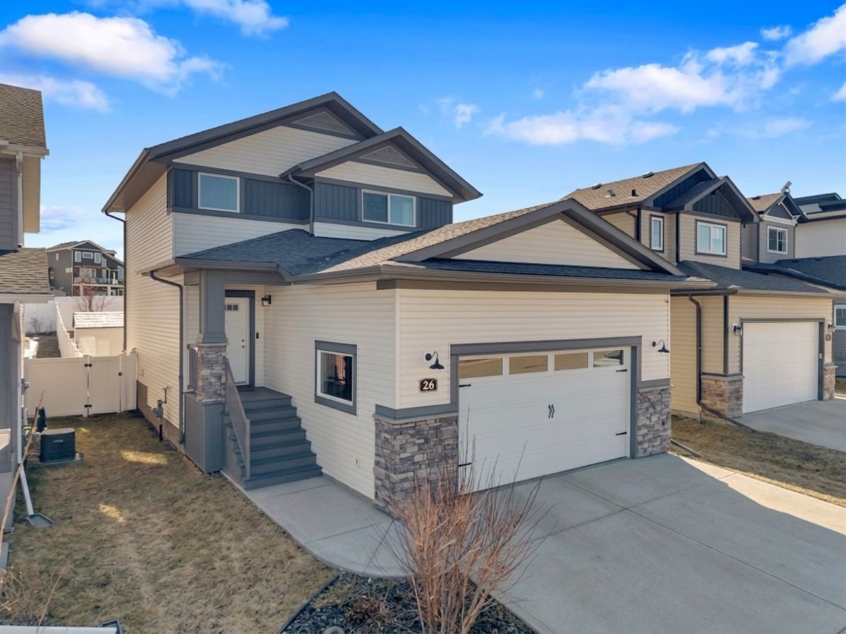 Welcome to this beautiful 2-storey home in a sought-after family neighbourhood, offering rare privacy with no neighbours behind you backing onto an expansive green space with walking and biking trails connecting to multiple parks close by. The open-concept main floor is bright and inviting, featuring large windows, 9’ ceilings, and a functional layout perfect for everyday living and entertaining. The kitchen includes maple cabinetry, an extended eating bar, stainless steel appliances and a convenient walk-through pantry. The sunny dining area leads out to a 10’ x 14’ deck and a 16’ x 20’ p...
