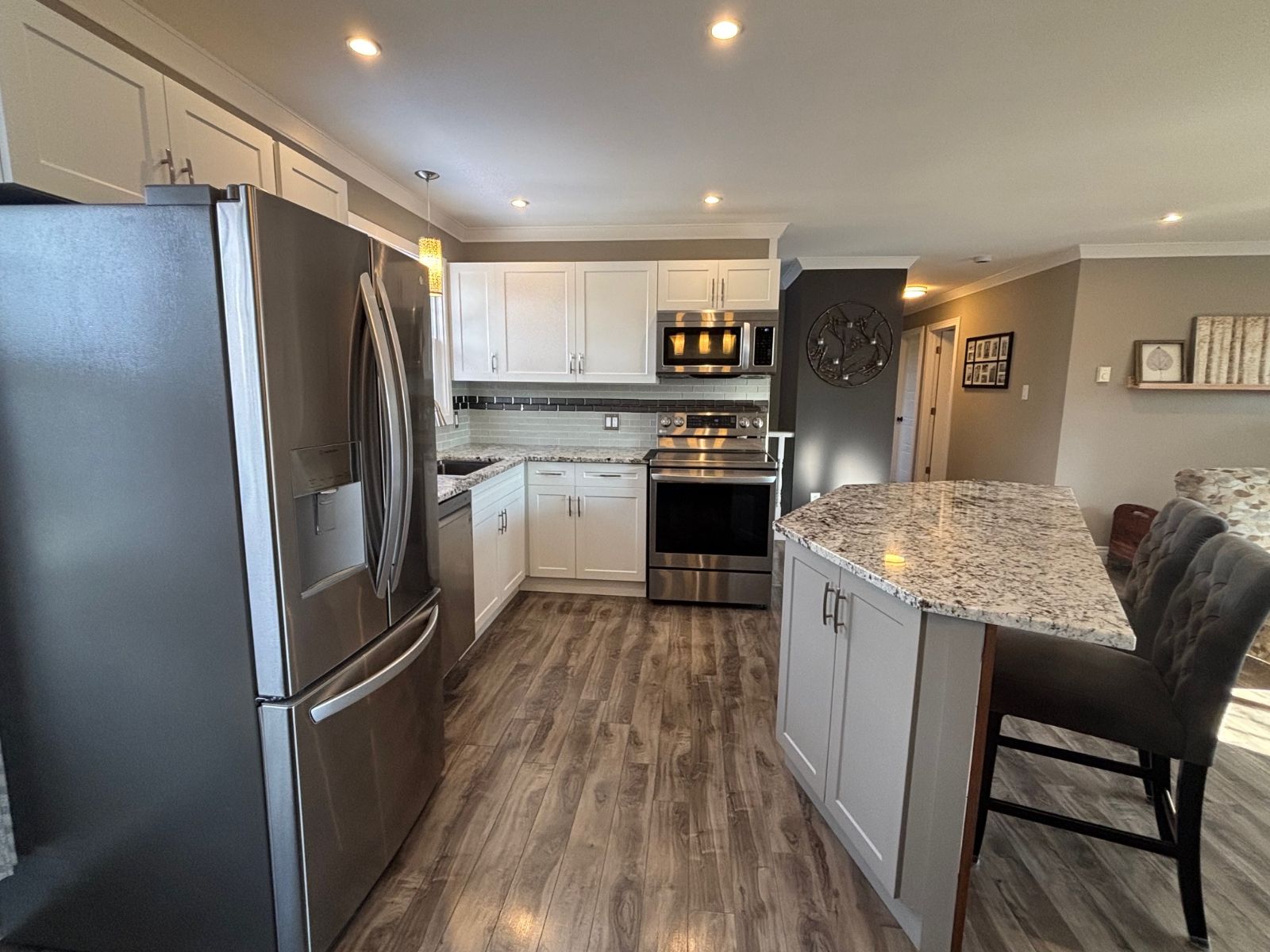 Discover the perfect blend of serene countryside charm and everyday convenience in this beautifully updated 3-bedroom + den, 2-bath bungalow, nestled on a spacious 15,000 sq ft lot. in beautiful Albert Bridge. Approximately 2,060 sq ft of thoughtfully designed open concept living space including a fully finished basement. This home offers ample room for family gatherings, hobbies, or simply unwinding in style. Step inside to tasteful laminate flooring complemented by elegant crown molding, wainscotting, and other refined details that add a touch of sophistication. This updated open concept h...