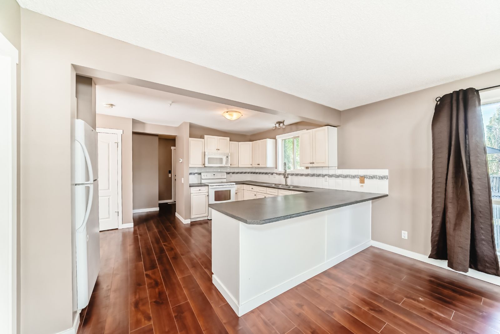 Gorgeous Family Home on Massive Pie Lot in a Quiet Cul-de-Sac Welcome to this beautiful 2-storey home located on a huge pie-shaped lot backing onto green space in a quiet cul-de-sac, nestled in a family-friendly neighborhood. This charming property features a double attached insulated garage and offers great curb appeal. Inside, you'll find a bright and inviting main entry that sets the tone for the rest of the home, which showcases fresh paint and modern laminate and vinyl flooring throughout — with no carpet for easy maintenance. The main floor is filled with natural light, thanks to the lar...
